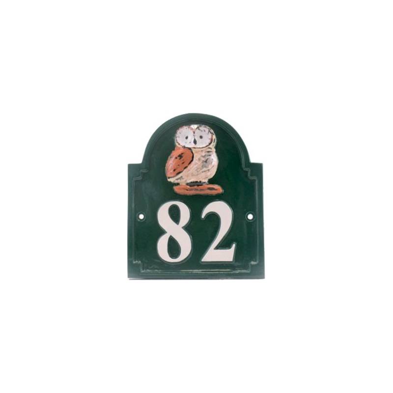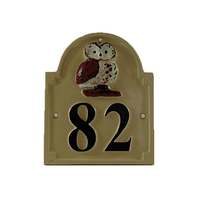 Numéro de maison en aluminium avec une décoration de chouette fait à la main